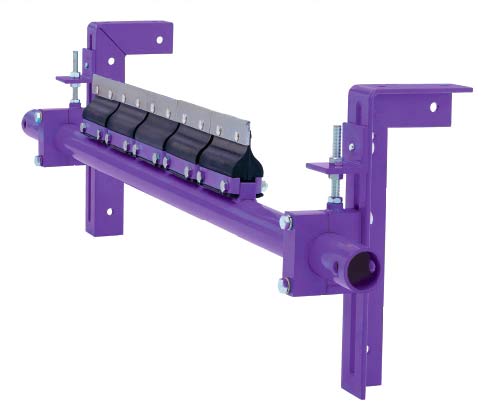 Our innovative secondary belt cleaner is unmatched for superior cleaning efficiency - especially in tough applications with wet, sticky carryback materials. The patented U-shaped blade conforms to the belt. The blade's carbide tips scrape stubborn materials off the belt while the rubber backer "squeegees" wet materials. The dual-spring tensioner also maintains low, uniform blade pressure across the entire belt width.